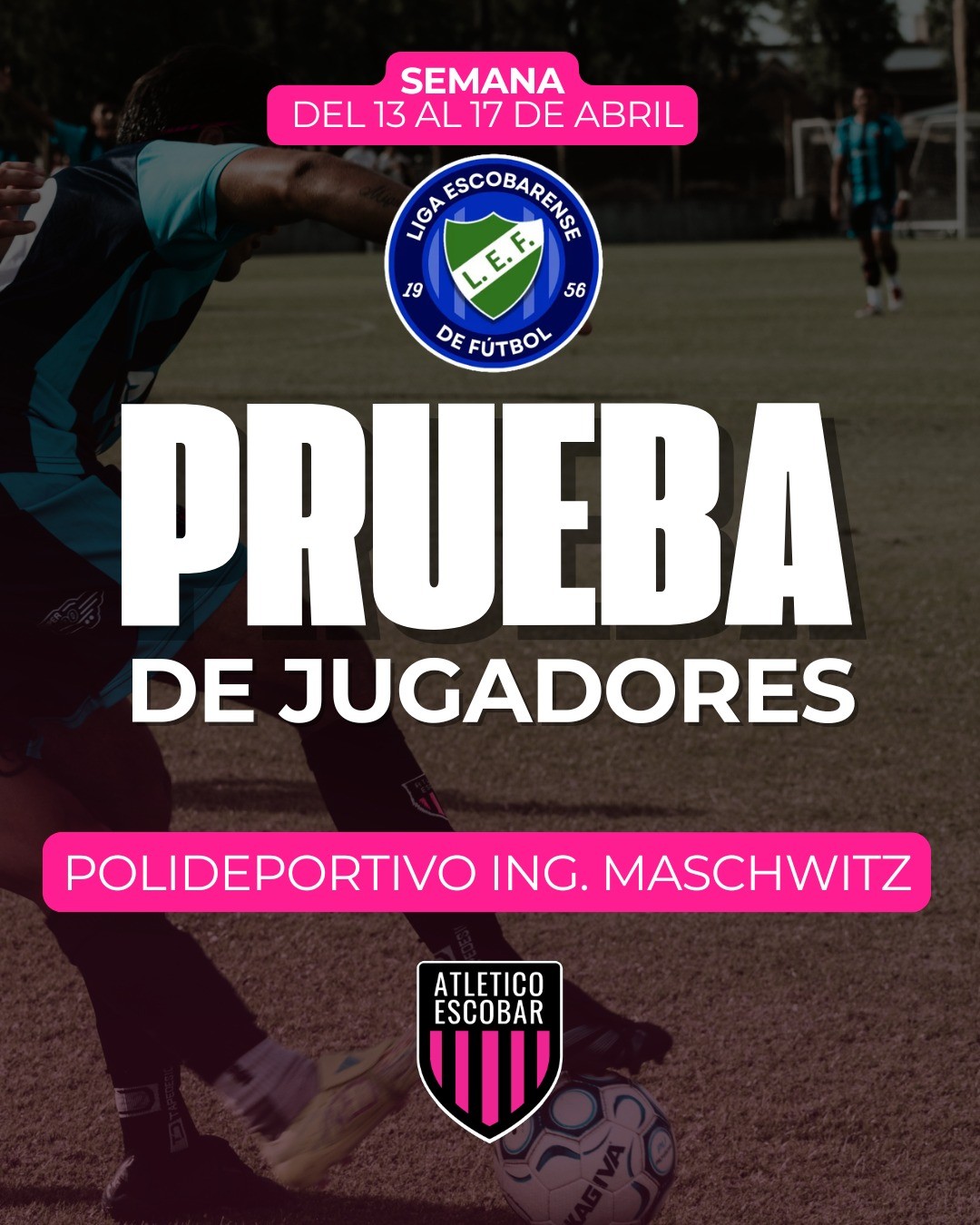 Del 13 al 17 de abril, Atlético Escobar pondrá en marcha una nueva etapa de pruebas abiertas en sus sedes de los polideportivos de Ingeniero Maschwitz y Lemos (Garín). La convocatoria apunta a seguir nutriendo las divisiones formativas, tanto en masculino como en femenino, en un momento clave del año donde se rearman planteles y se proyecta la temporada.