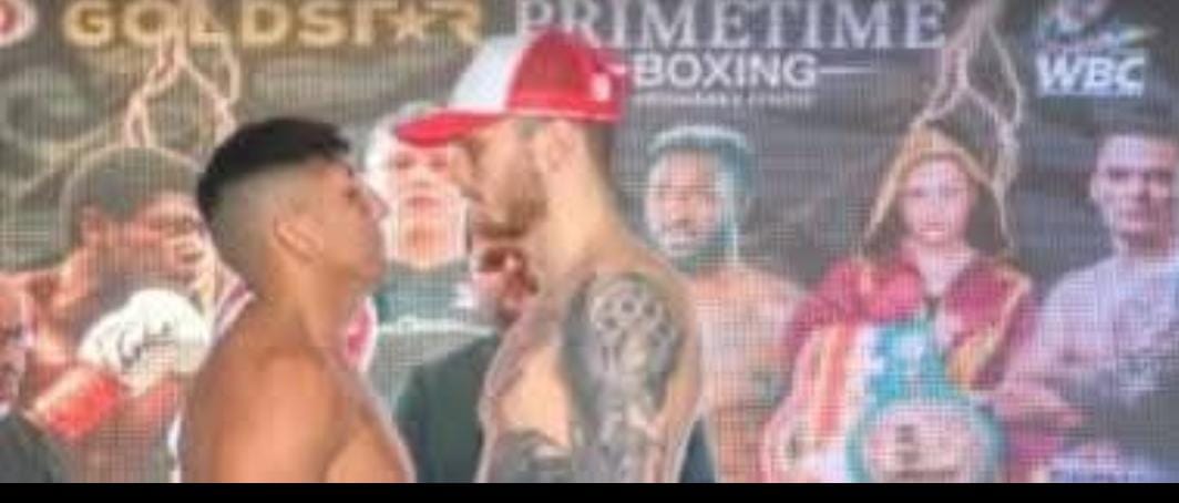 Unica foto oficial: cara a cara en el pesaje previo a la pelea